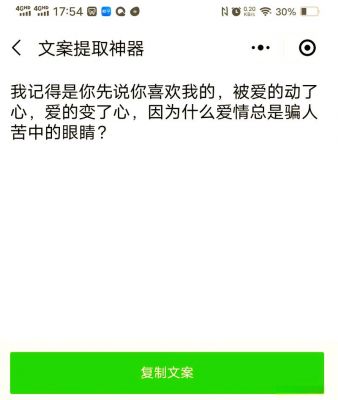 轻抖App视频文案提取全攻略,简单操作让你轻松获取精彩内容您需要复制想要提取文案的抖音视频链接。找到视频后,长按链接,选择复制。然后回到轻抖app,将复制的链接粘贴到指定的输入框中。确认链接无误后,点击“一键提取文案”按钮。接着,您只需等待系统处理。这可能需要一段时间,具体取决于视频的长度包括内容2025-09-06 05:45:47 轻抖App视频文案提取全攻略,简单操作让你轻松获取精彩内容您需要复制想要提取文案的抖音视频链接。找到视频后,长按链接,选择复制。然后回到轻抖app,将复制的链接粘贴到指定的输入框中。确认链接无误后,点击“一键提取文案”按钮。接着,您只需等待系统处理。这可能需要一段时间,具体取决于视频的长度包括内容2025-09-06 05:45:47